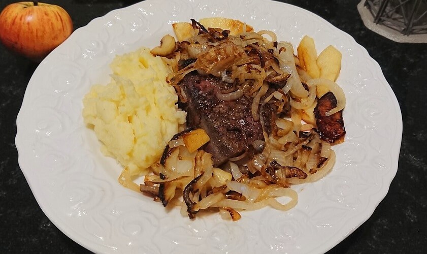 Auf typisch Berliner Art wird Leber mit Zwiebeln und Äpfeln serviert, was dem Ganzen eine deftig-süßliche Note gibt, die sehr gut mit dem Geschmack der Leber harmoniert.