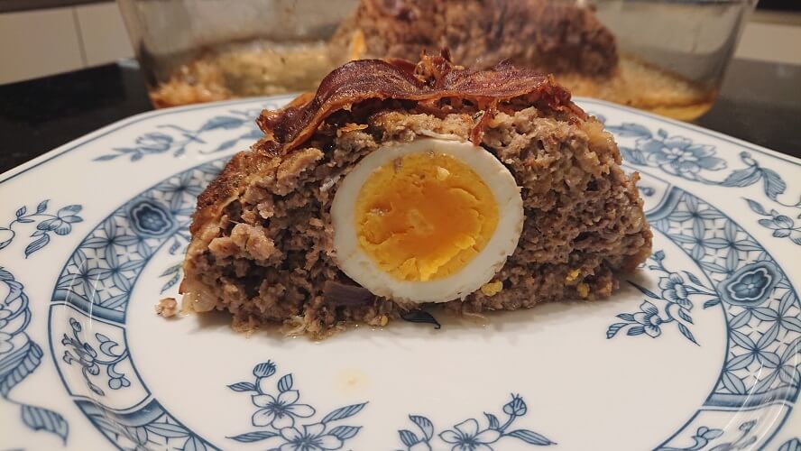 Seinen lustigen Namen verdankt dieser Hackbraten der Tatsache, dass er früher in Hasenpfannen zubereitet wurde und nicht – wie man vielleicht meinen könnte – dem Umstand, dass im Hack mindestens ein gekochtes Ei versteckt wird.